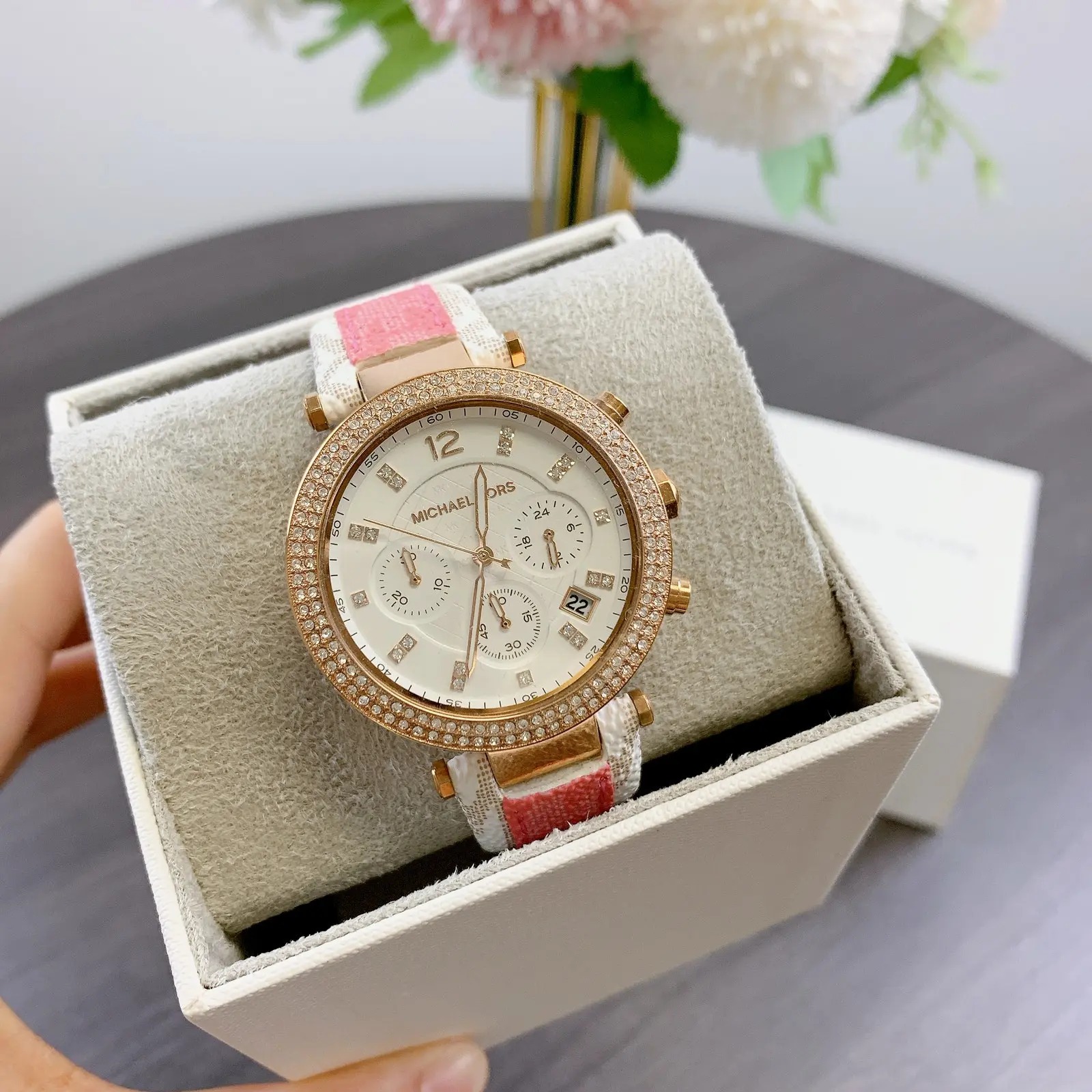 JAM TANGAN WANITA MICHAEL KORS MK 6951 / MK6951 ROSEGOLD RED LEATHER FREE ONGKIR - FREE BOX ORIGINAL