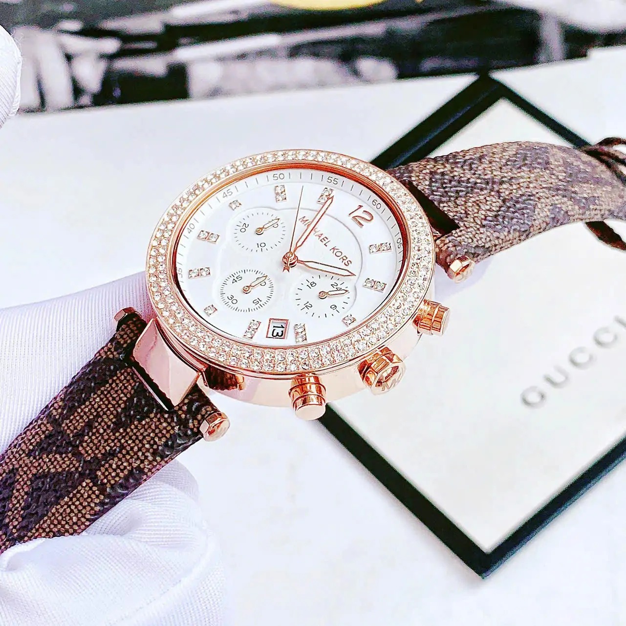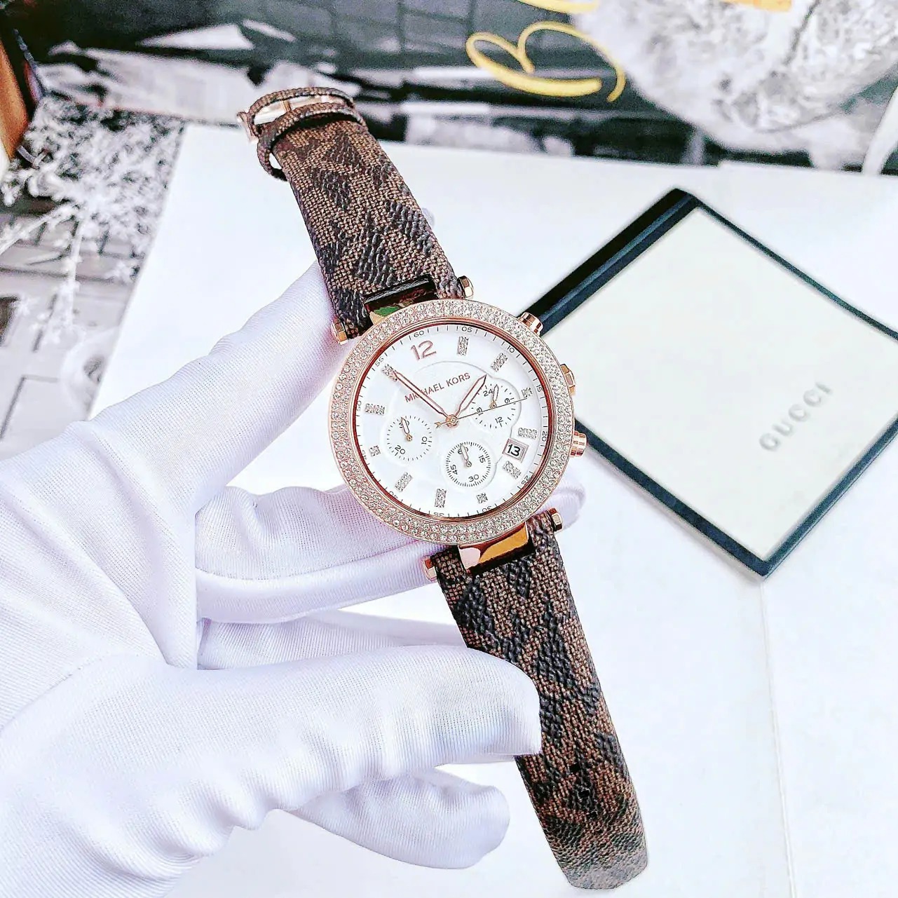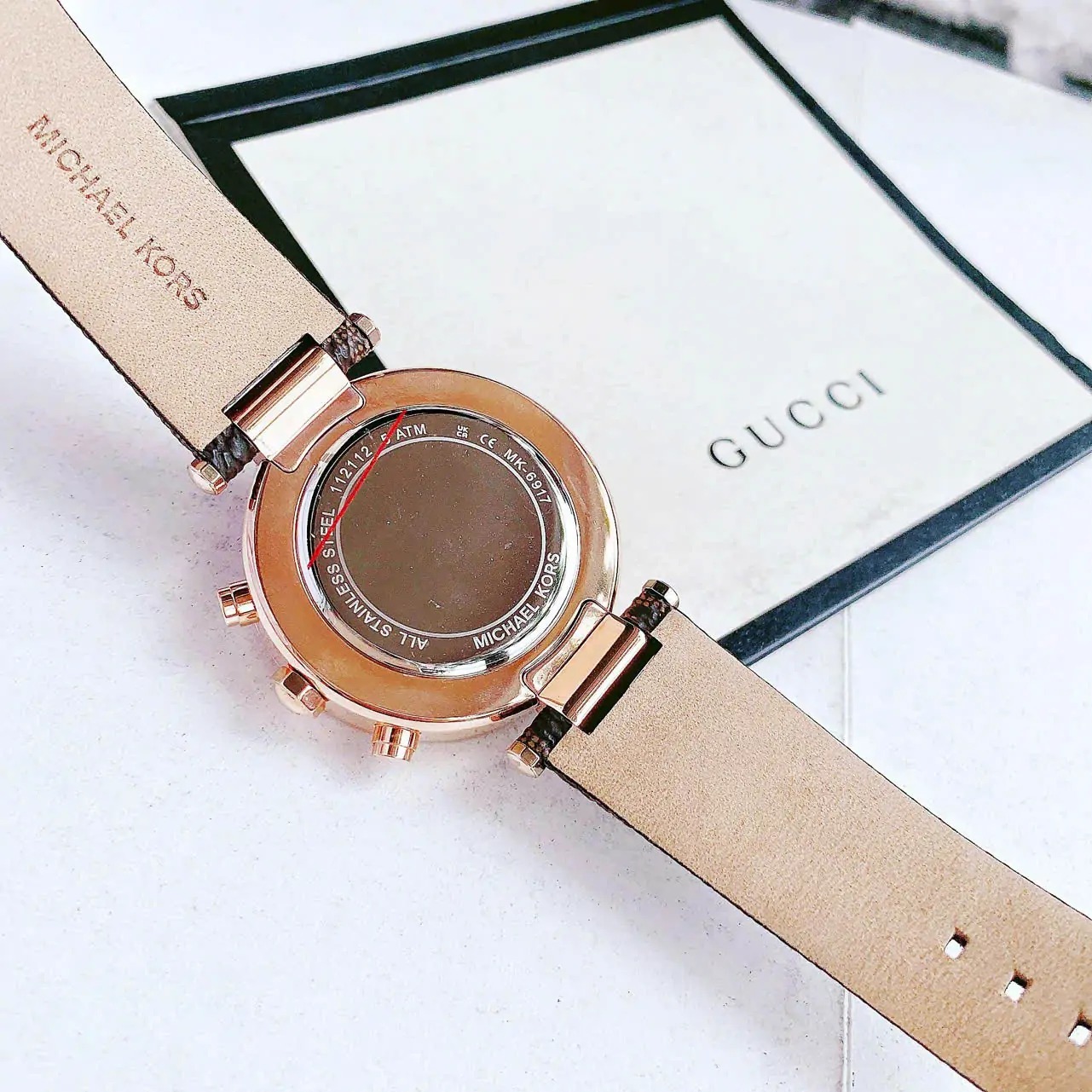 JAM TANGAN WANITA MICHAEL KORS MK 6917 / MK6917 ROSEGOLD BROWN LEATHER FREE ONGKIR - FREE BOX ORIGINAL
