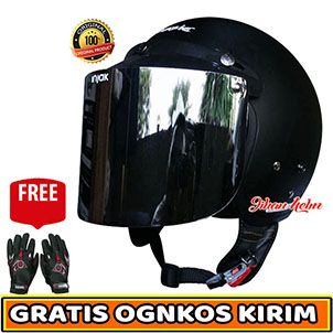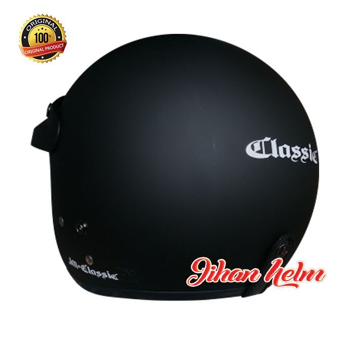 Helm Retro Half Face DEWASA / Helm Bogo Classic Jm Black Doff Kc Flat Silver Terlaris