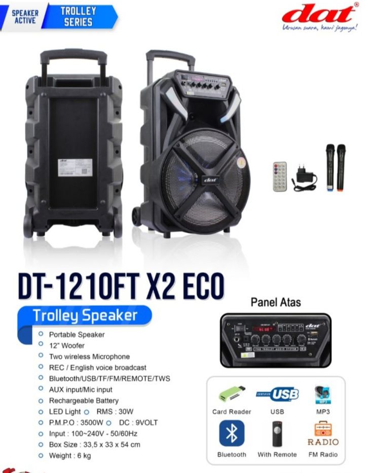 Speaker Dat Dt 1210Ft X2 bonus mic 2 wireless garansi resmi 1tahun
