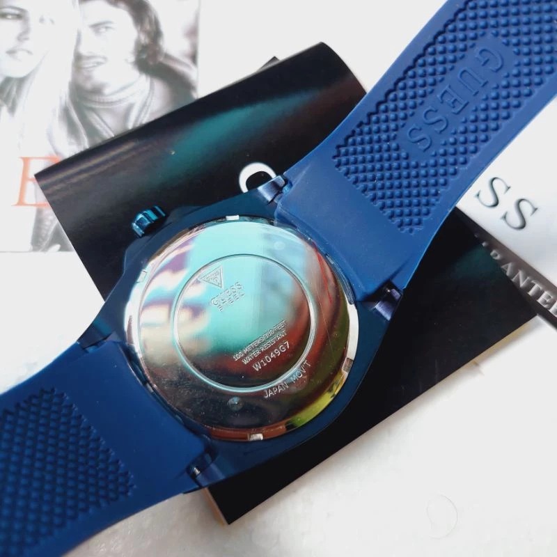 JAM TANGAN PRIA GUESS W1049G7 BLUE RUBBER - FREE BOX FREE ONGKIR