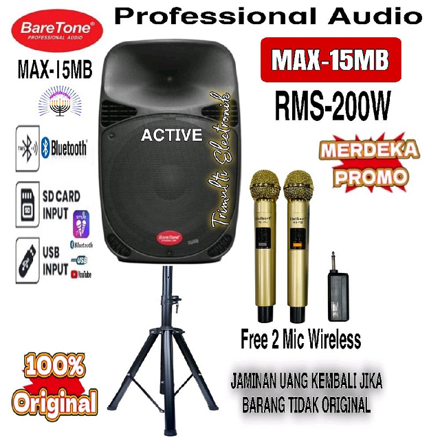 Speaker Aktif 15 Inch BareTone MAX15MB Original 2 Mic Wireless USB Bluetooth