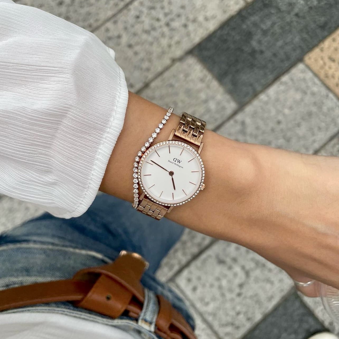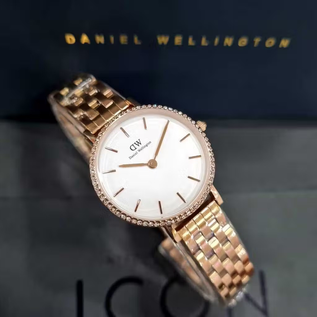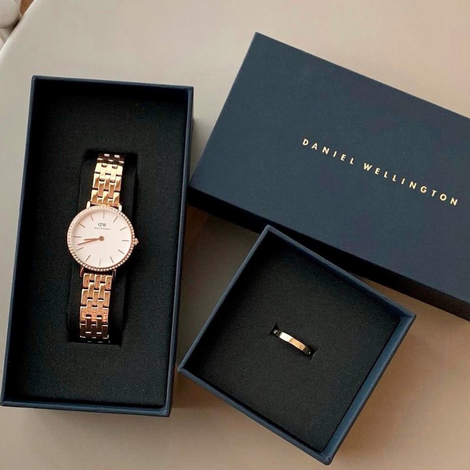 JAM TANGAN WANITA DANIEL WELLINGTON ICONIC BEZEL 5 LINK ROSEGOLD WHITE STAINLESS STEEL FREE ONGKIR - FREE BOX ORIGINAL