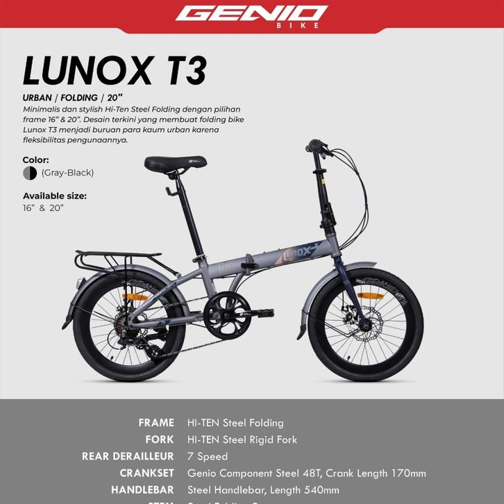 Sepeda Lipat 20 inch Genio Lunox T3 By United 7 Speed