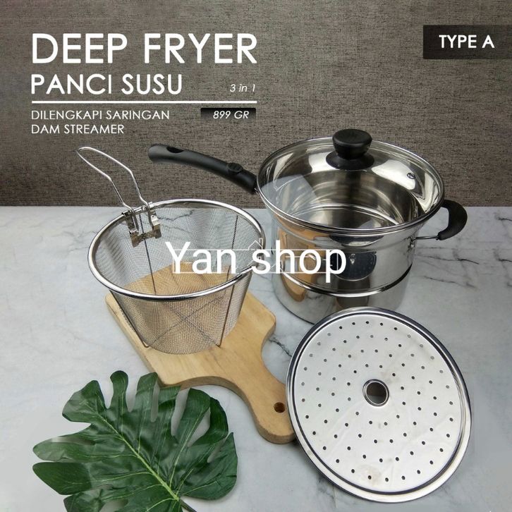 Panci susu deep fryer goreng kukus masak steamer saringan multifungsi 3in1