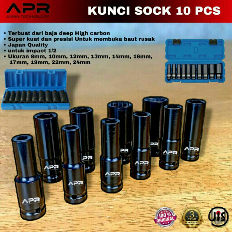Kunci sock APR JAPAN impact wrench 1/2inch 8mm sampai 24mm