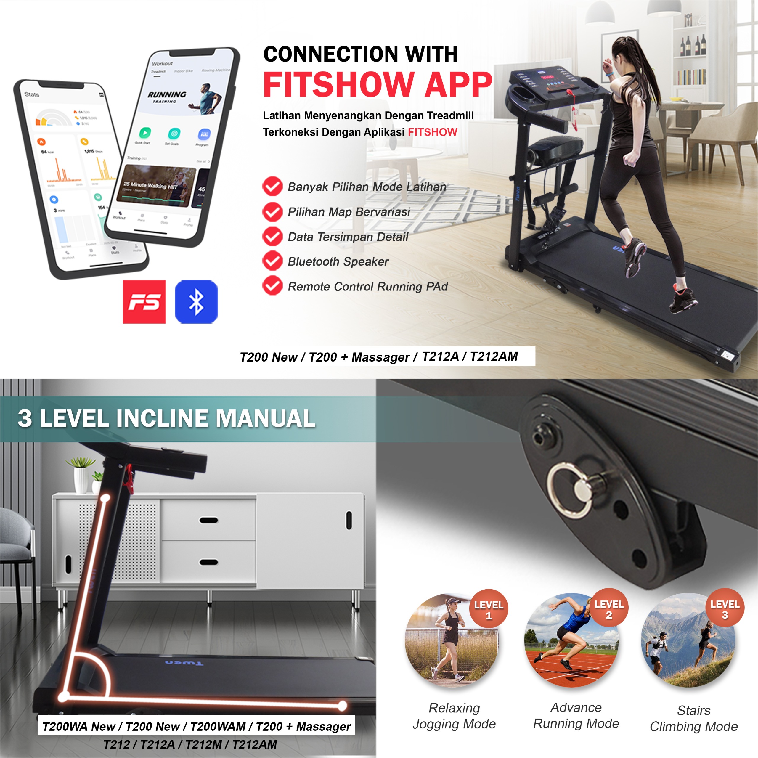 TWEN T200WA new T200 new + M T200WAM Treadmill Listrik Treadmill Portable Treadmill Multifungsi Treadmil Lipat Treadmill