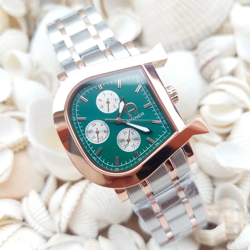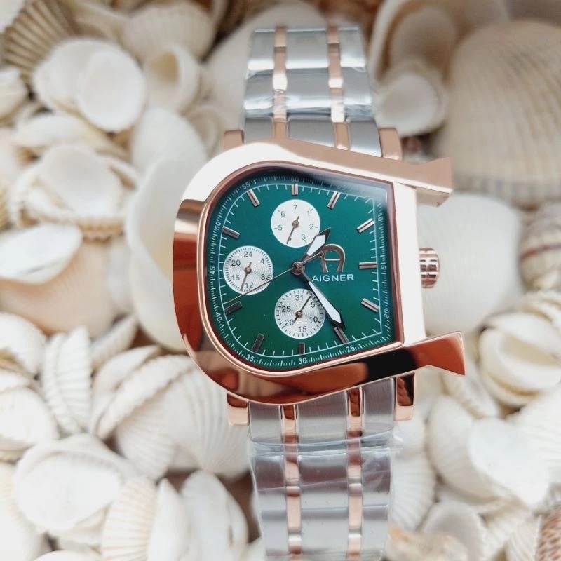 JAM TANGAN WANITA AIGNER VARESE A48618 DUAL TONE EMERALD STAINLESS STEEL FREE ONGKIR ORIGINAL