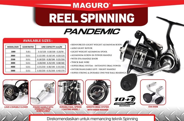 Alat Pancing Ril Maguro PANDEMIC Reel Spinning 10+1 Power Handle Aluminum Body