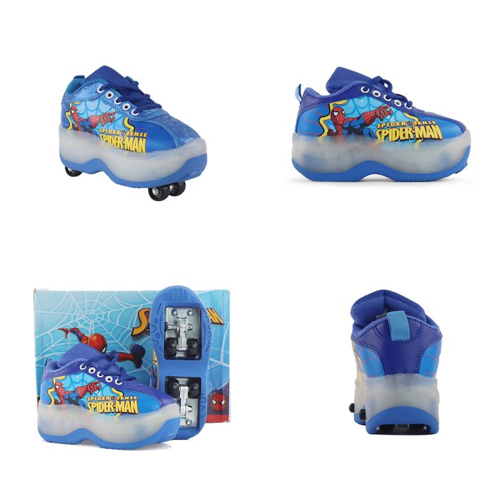 Sepatu Roda Anak Laki-laki Roda 4 Karakter Spidermen Biru
