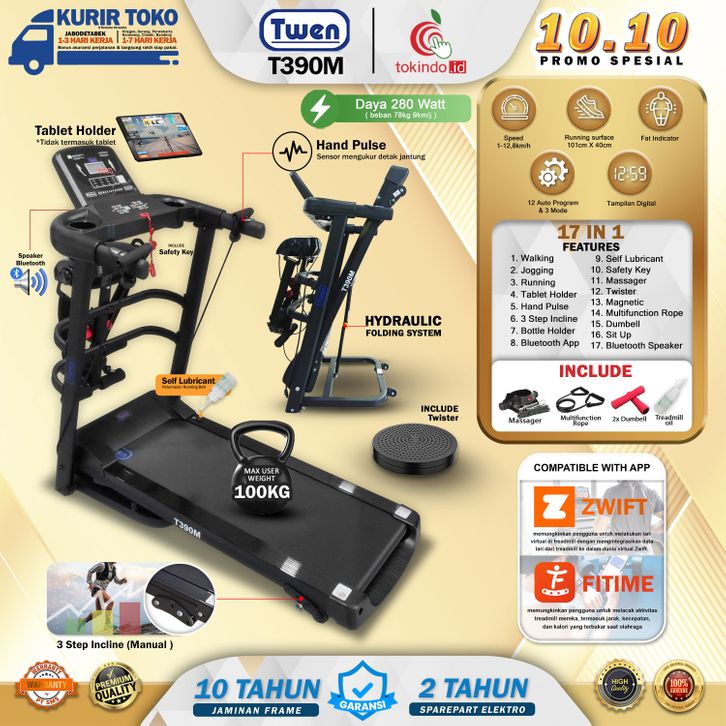 TWEN T309M T390M Treadmill Listrik Treadmill Portable Treadmill Multifungsi Treadmil Lipat Treadmill Electric Low Watt
