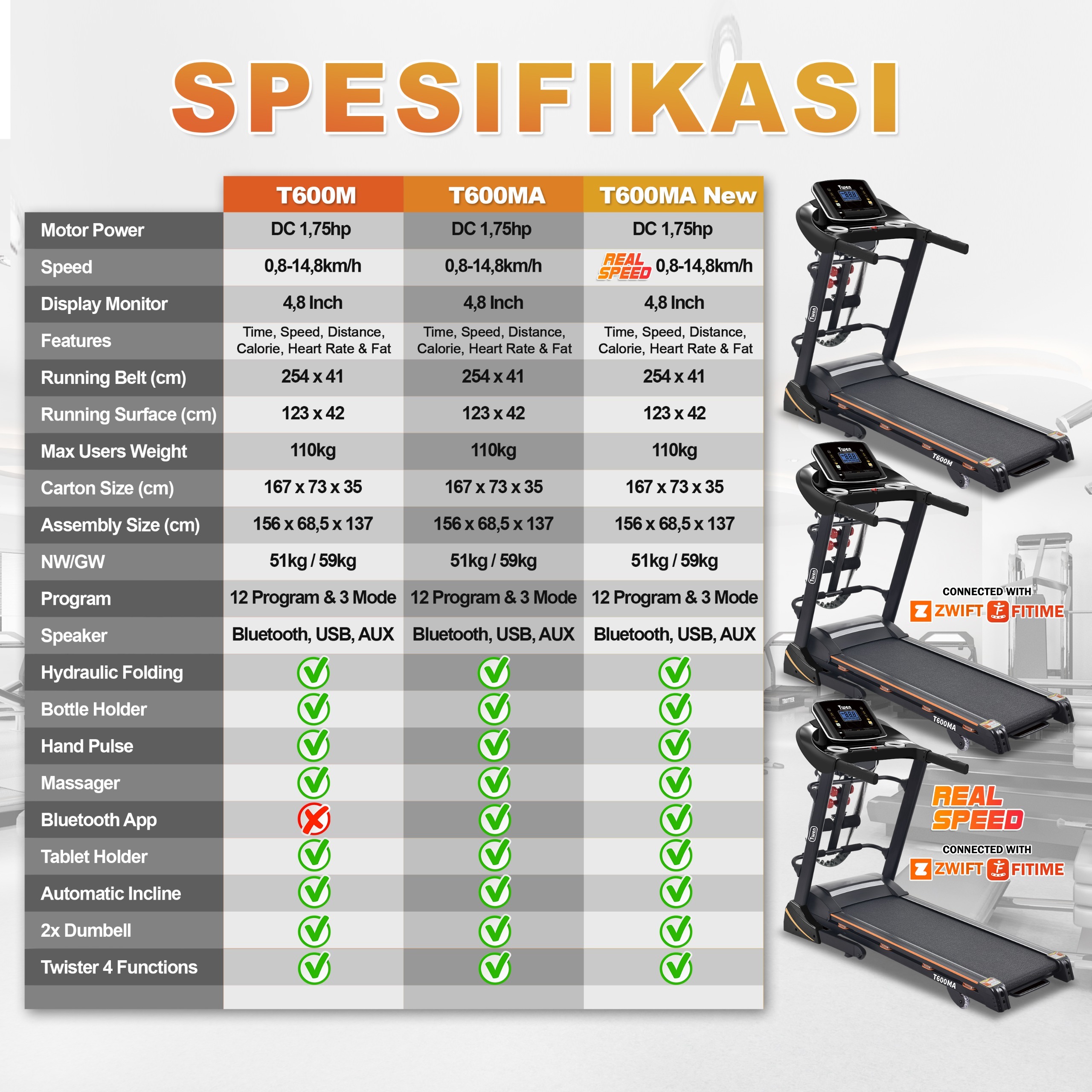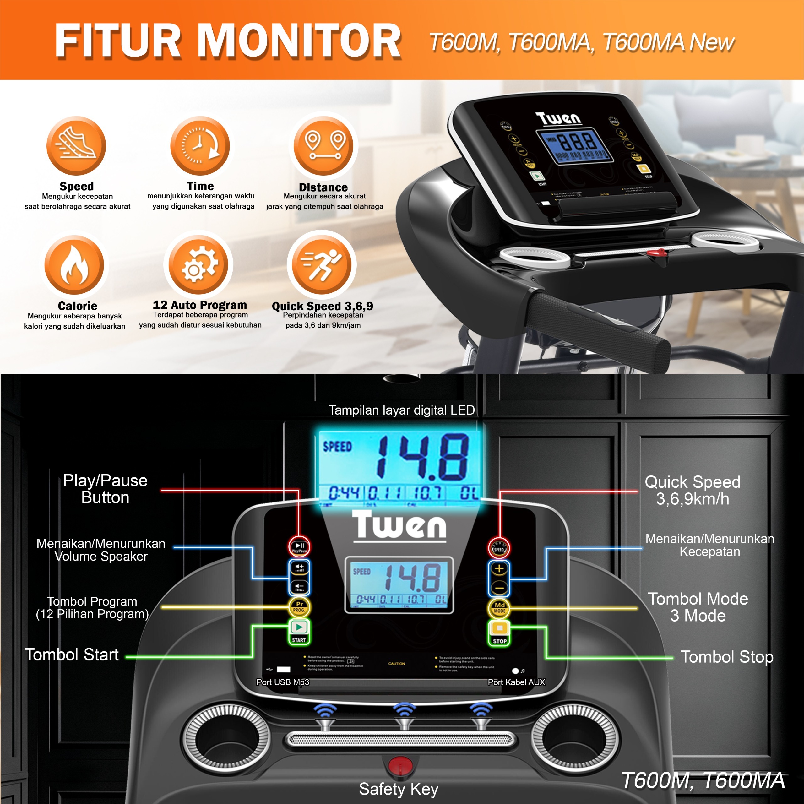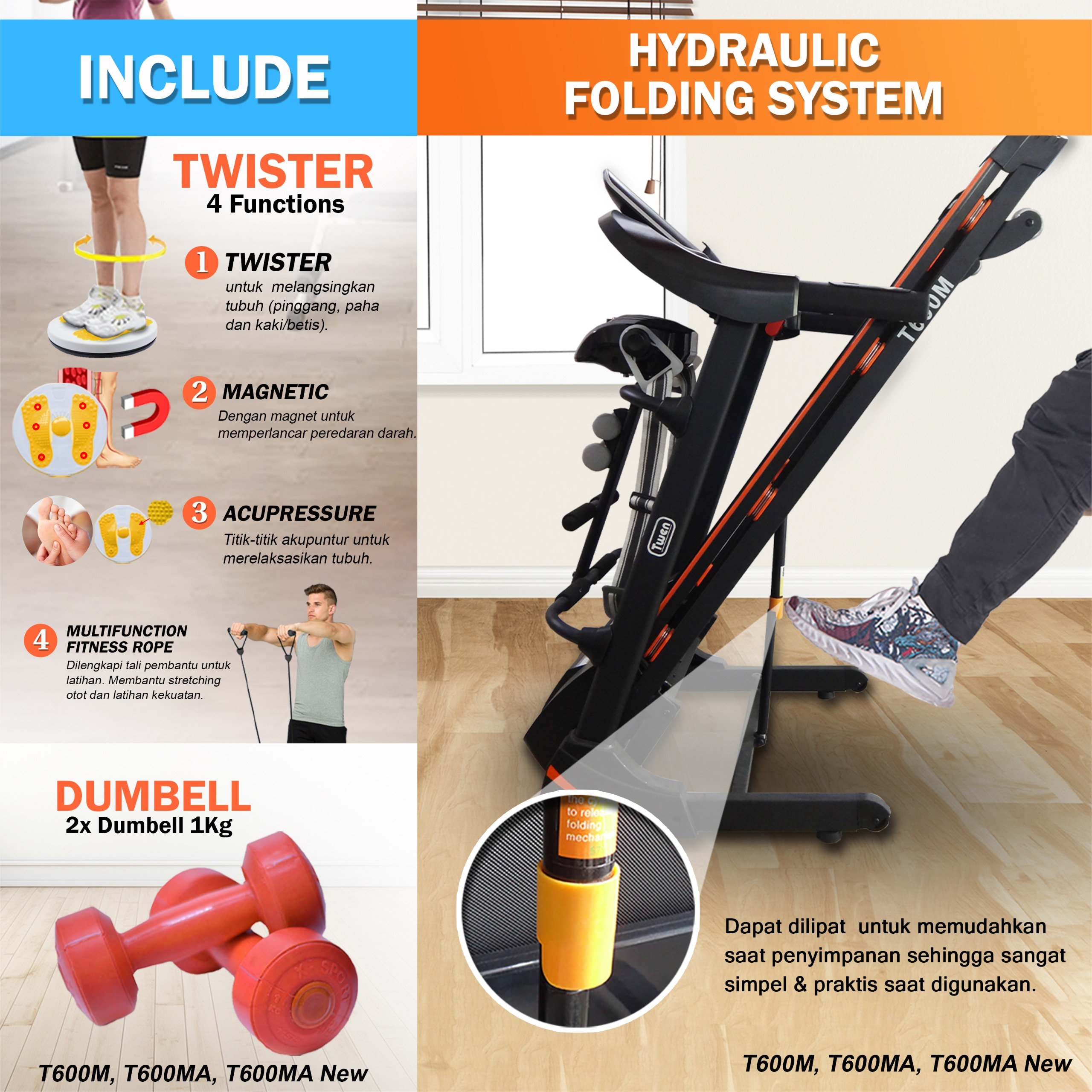 TWEN T600MA Treadmill Listrik Treadmill Portable Treadmill Multifungsi Treadmil Lipat Treadmill Electric Low Watt
