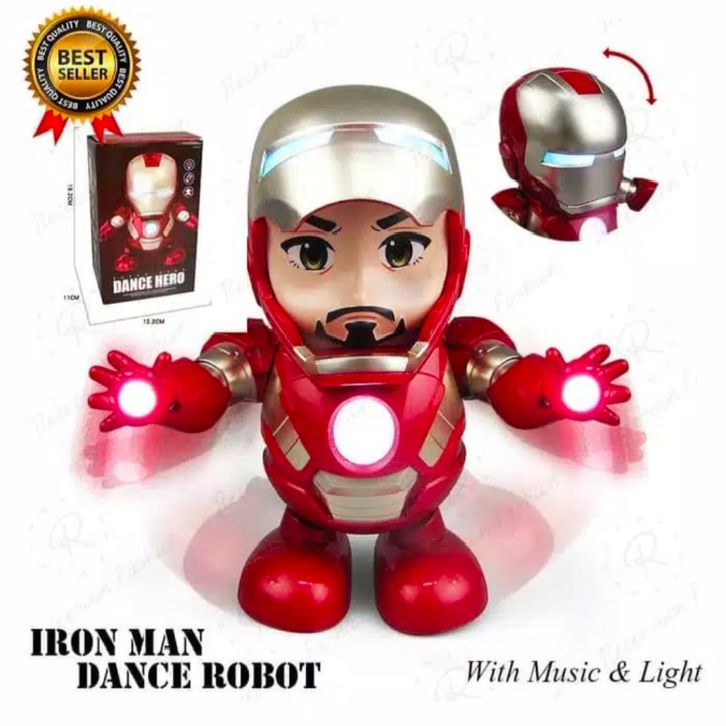 Mainan Dancing Robot Ironman Iron Man with LED Pajangan Dance Hero