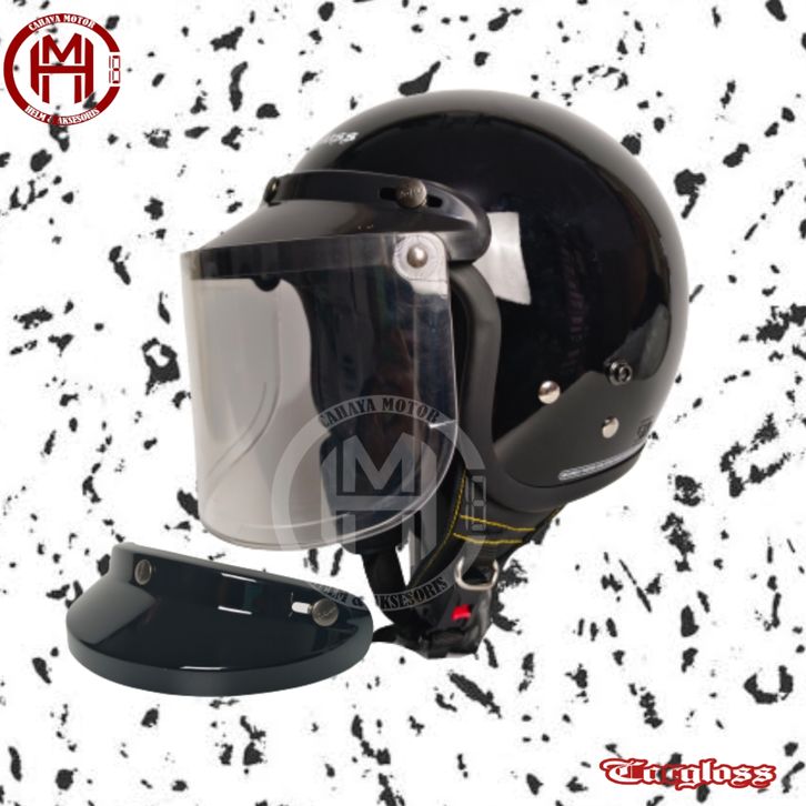 HELM CARGLOSS DEEP BLACK/HITAM GLOSI/PAKET KACA