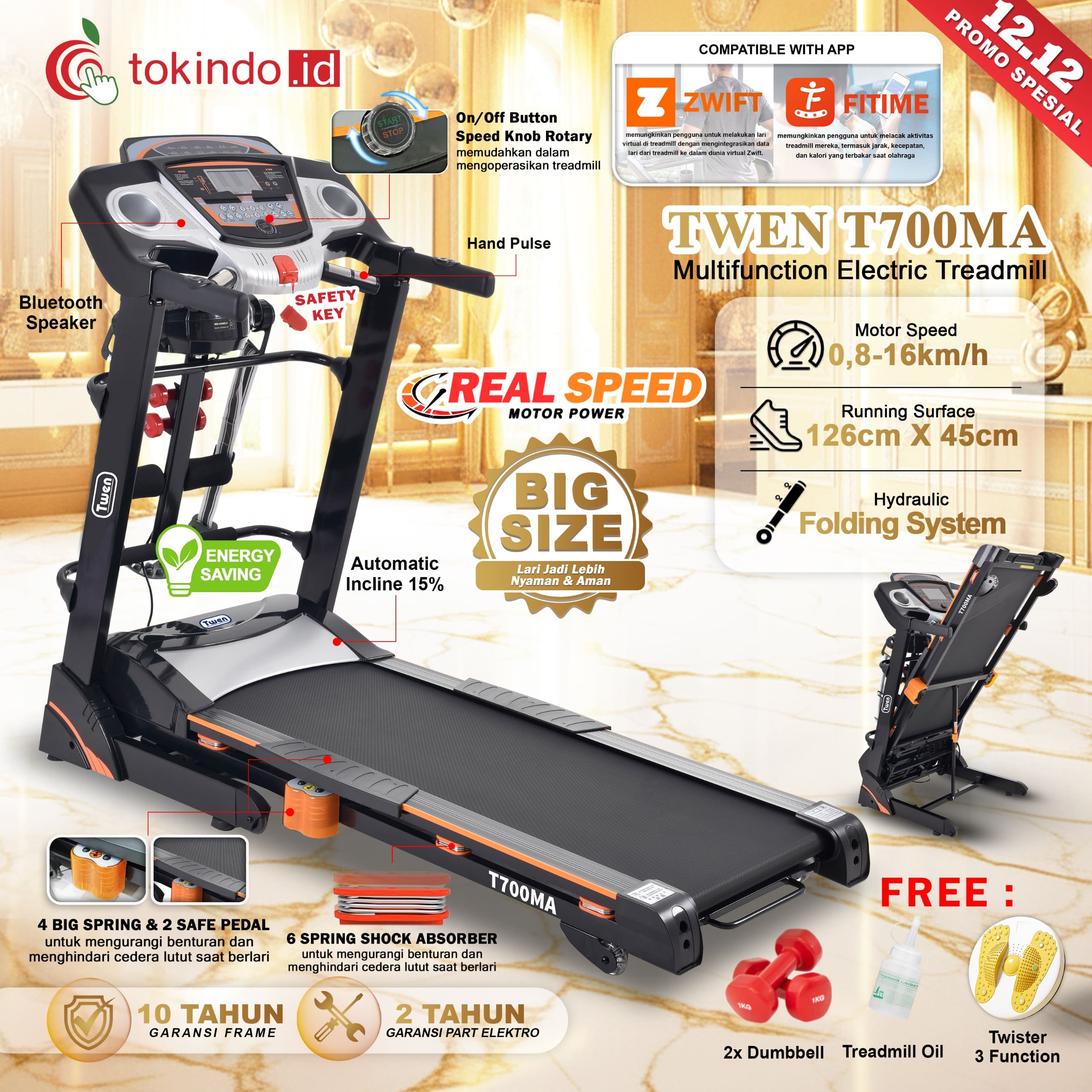 TWEN T700MA Treadmill Listrik Treadmill Portable Treadmill Multifungsi Treadmil Lipat Treadmill Electric Low Watt