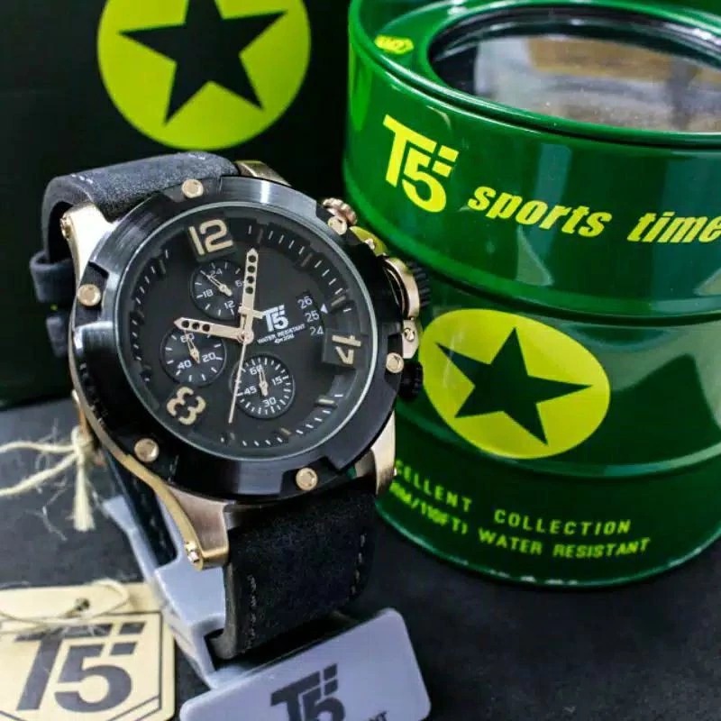 JAM TANGAN PRIA T5 H 3638 BLACK ROSEGOLD LEATHER CHRONOGRAPH FREE ONGKIR - FREE BOX ORIGINAL