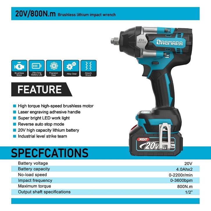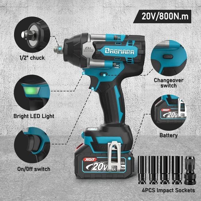 Dagmara 800Nm 1/2 Inch Cordless Impact Wrench Brushless