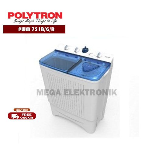 Polytron PWM751B/G/R Mesin Cuci 2 tabung 7.5 kg Transparan