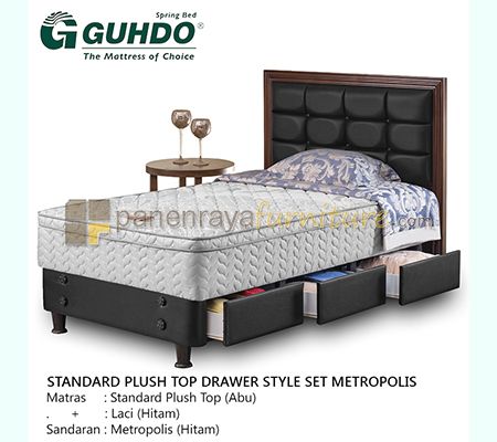 Springbed Laci Guhdo Drawer Bed Standard Plush Top Abu HB Metropolis Hitam - Jakarta, Tangerang Only