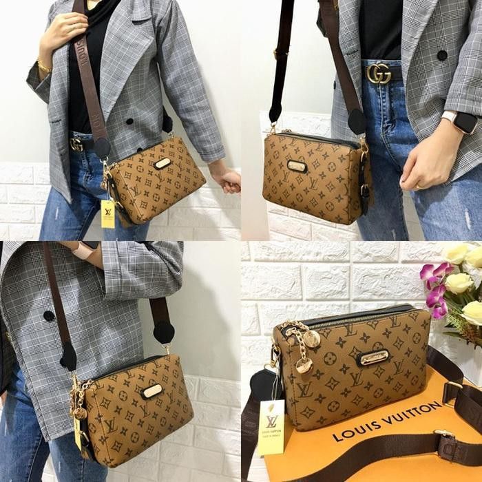 REAL PICT! PROMO TAS WANITA LV SELEMPANG KARDASHIAN DEWI 2RUANG SUPER QUALITY SELEMPANG IMPORT BATAM