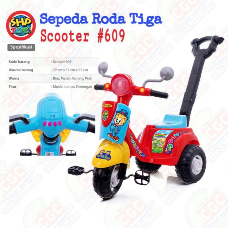 MAINAN ANAK SCOOTER 609 SHP TOYS - SEPEDA DORONG RODA TIGA - FREE BUKU TULIS
