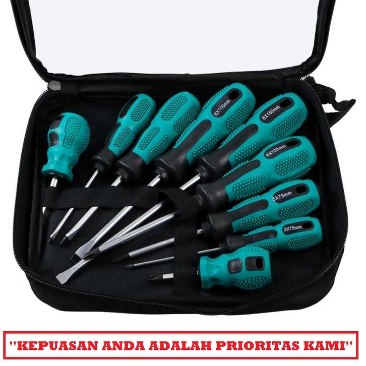 PROMO Set Obeng Magnet Gagang Karet Skrup Screwdriver Bintang Plus Min + - - 10 in 1 Lengkap Terbaik Terbaru Termurah