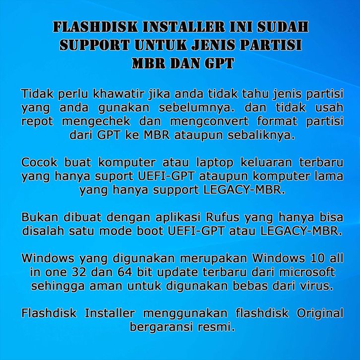 FLASHDISK BOOTABLE INSTALLER WINDOW 10 PLUS LISENSI WINDOWS 10 PRO-GPT