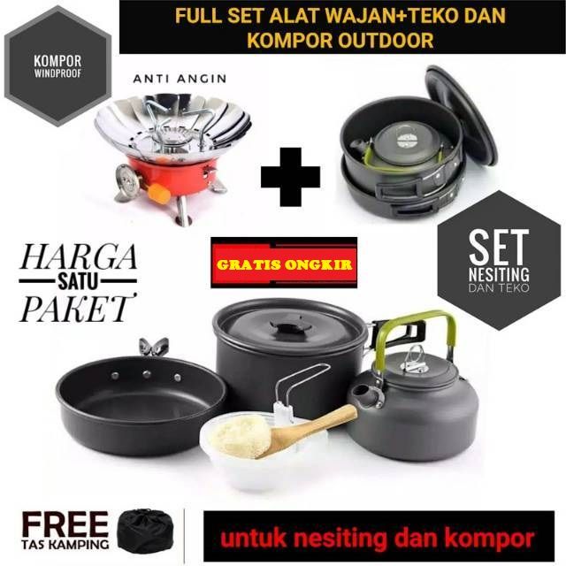 GRATIS ONGKIR- Cooking Set Plus Teko DS-308 & Stove K203 Kompor Mawar Nesting Camping Outdoor