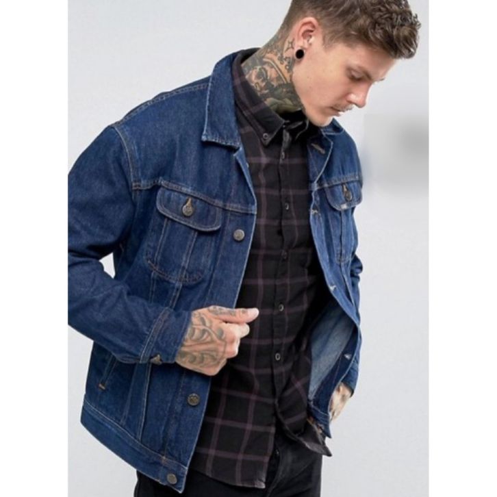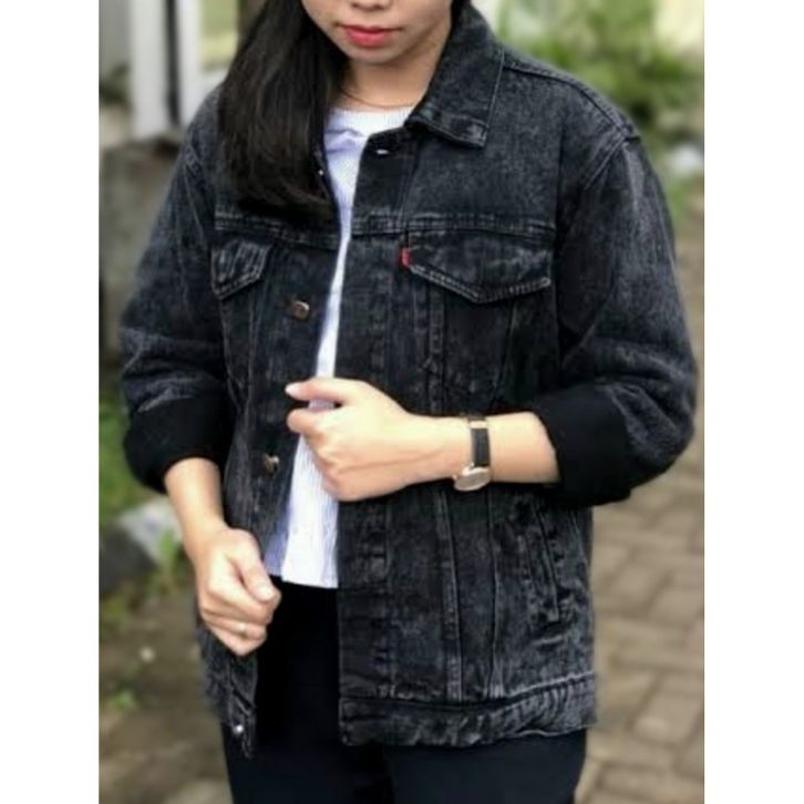 Jaket Jeans Pria Sandwash Black Denim Hitam Cowok Cewek Wanita Oversize Jumbo Big size XXL Premium