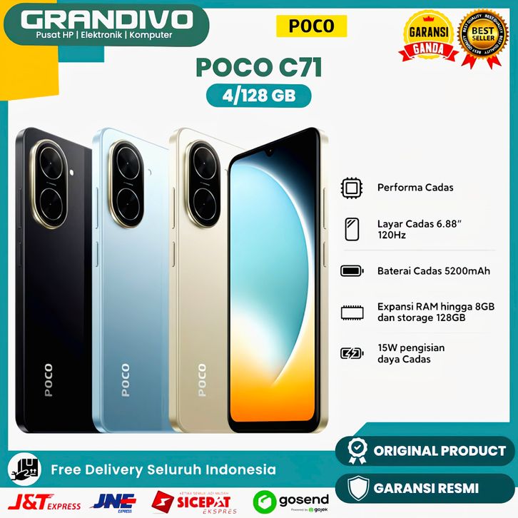 SEGEL XIAOMI POCO C71 4+4G/128G Performa Cadas | 6.88" 120Hz | Ekspansi RAM 8G / storage 128G Garansi Resmi - Grandivo