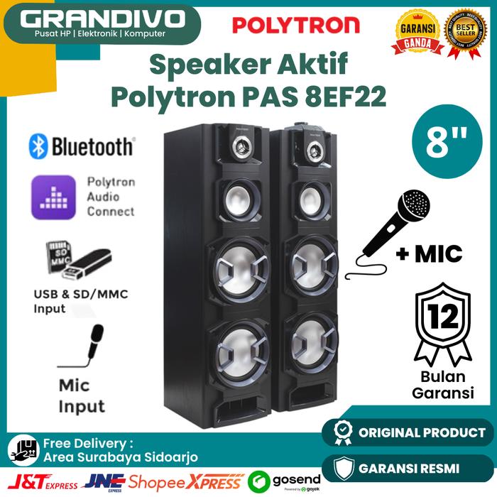 BONUS MIC POLYTRON PAS 8EF22 SPEAKER AKTIF BLUETOOTH Garansi Resmi - Grandivo