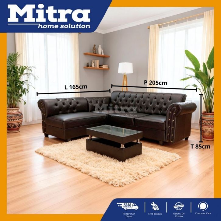 Sofa gratis ongkir/sofa L oscar hitam kancing mutiara/ sofa ruang keluarga