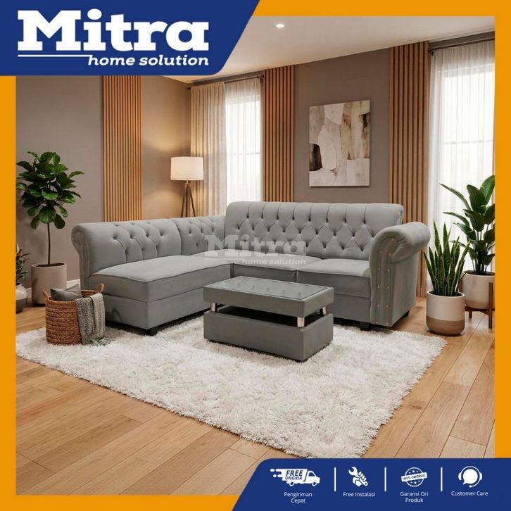 (FREE ONGKIR) SOFA L MINIMALIS PUTUS BLUDRU / SOFA L MURAH DAN NYAMAN - HITAM