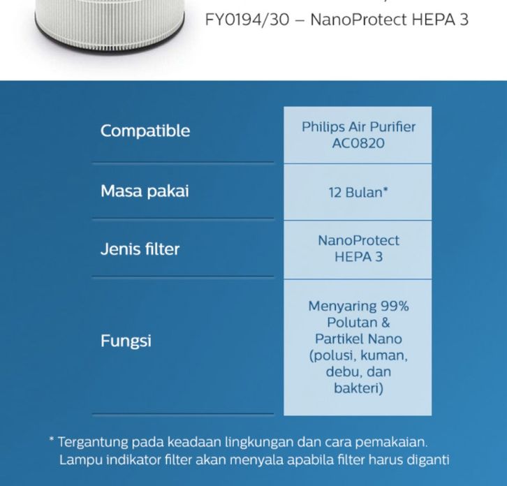 (FREE ONGKIR) PHILIPS NANO PROTECT FILTER PENYARING UDARA REPLACEMENT FY0194/30 - HEPA FILTER SERIES 800 ROW