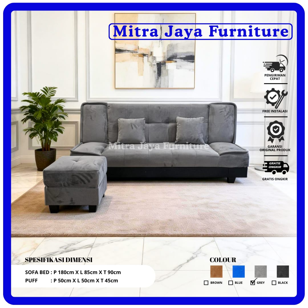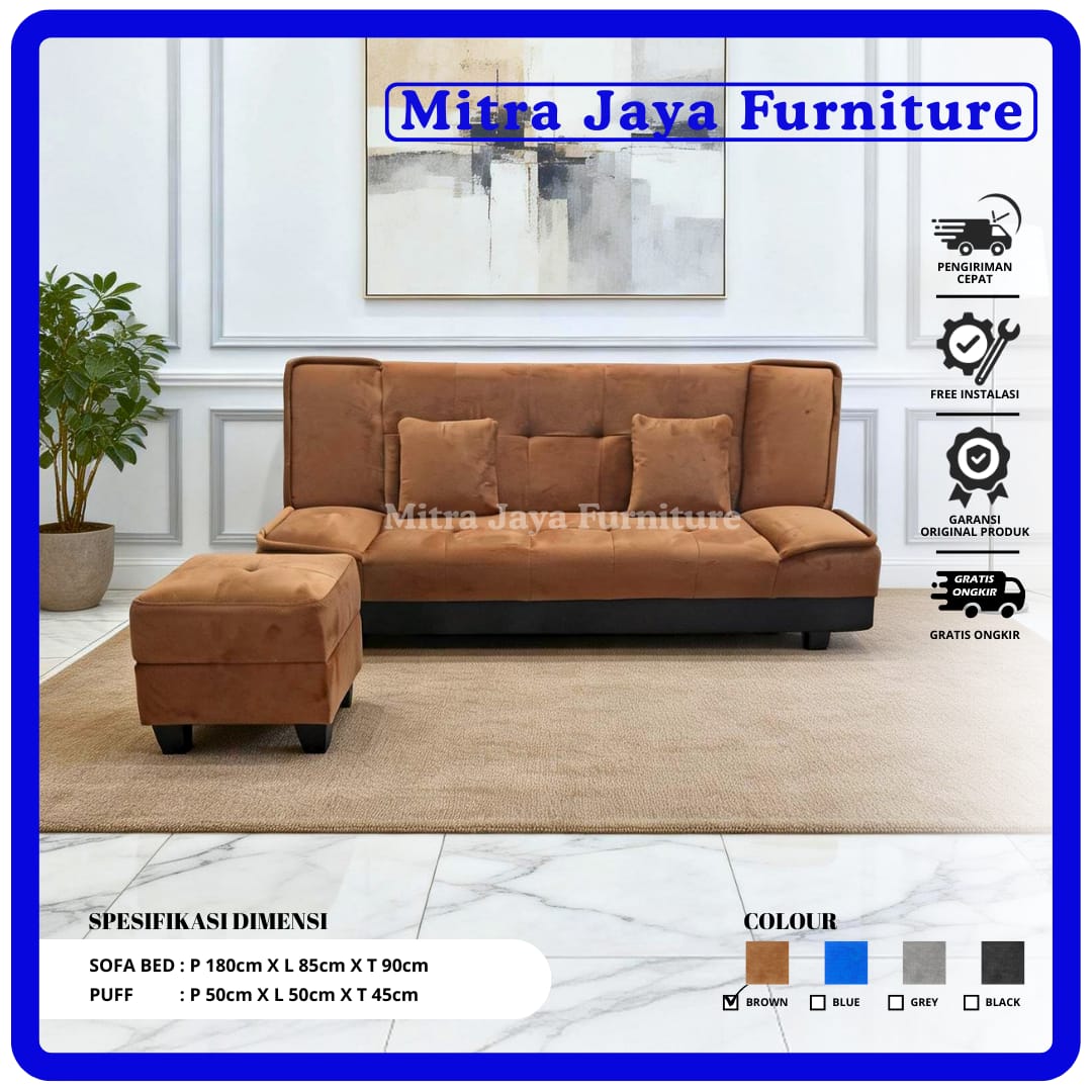 Sofabed Promo Multifungsi Sofa Bed Puff Minimalis Bahan Suede Lembut/ Mitra Jaya Furniture