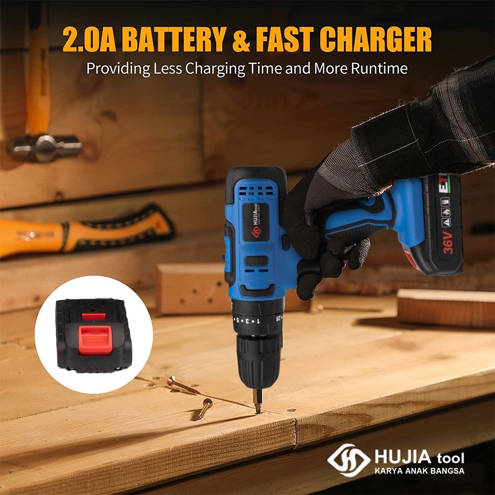 Bor baterai bor cas bor cordless Hujia 36 volt besi beton kayu fullset
