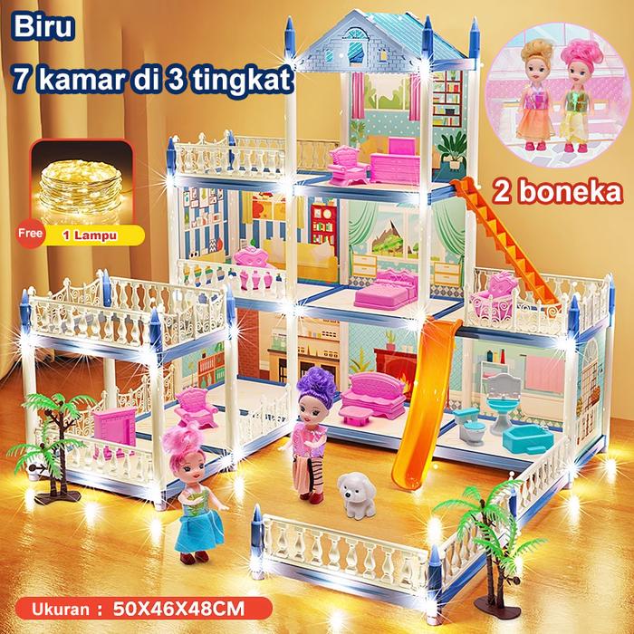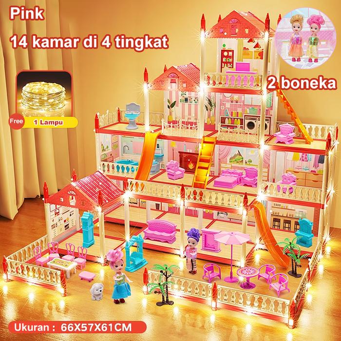 Mainan Rumah Rumahan Princess Castle dengan Boneka LED Lampu