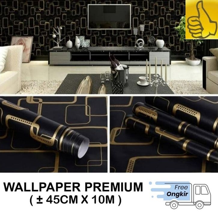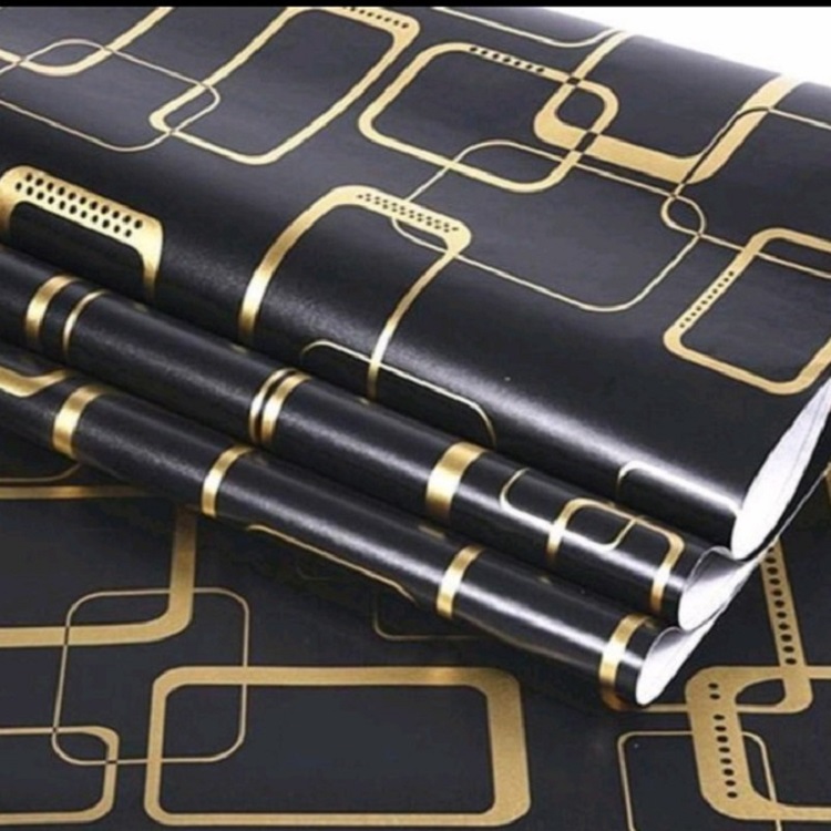 Wallpaper 10mtr x 45cm stiker dinding motif kotak oval 3d hitam