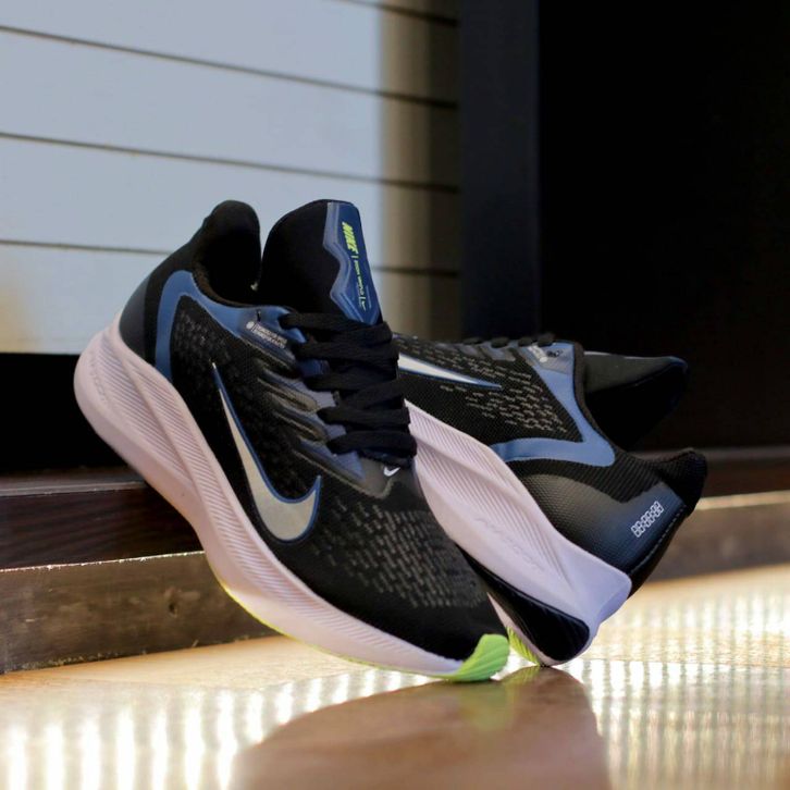 SEPATU PRIA & WANITA NIKE ZOOM WIND FLOW 2 BLACK BLUE GRADE ORI BNIB BONUS KAOS KAKI