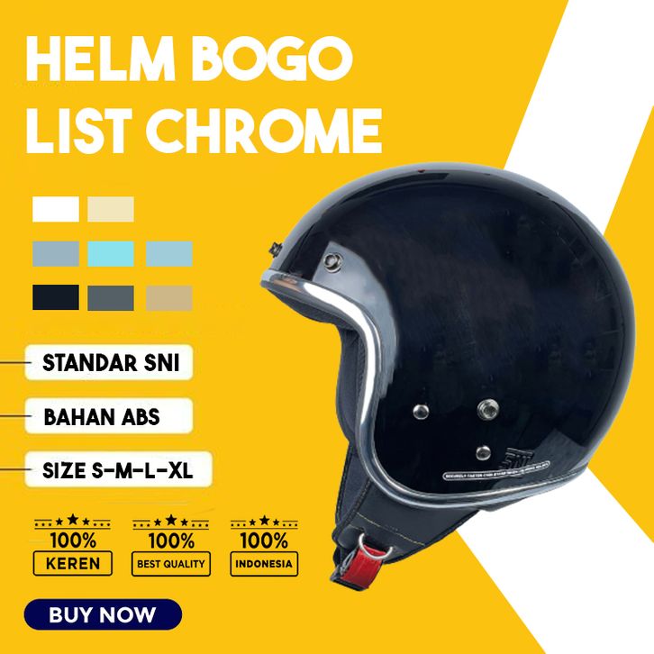 Helm BogO Dewasa List Chrome Polos Pria Wanita TerBaru SNI