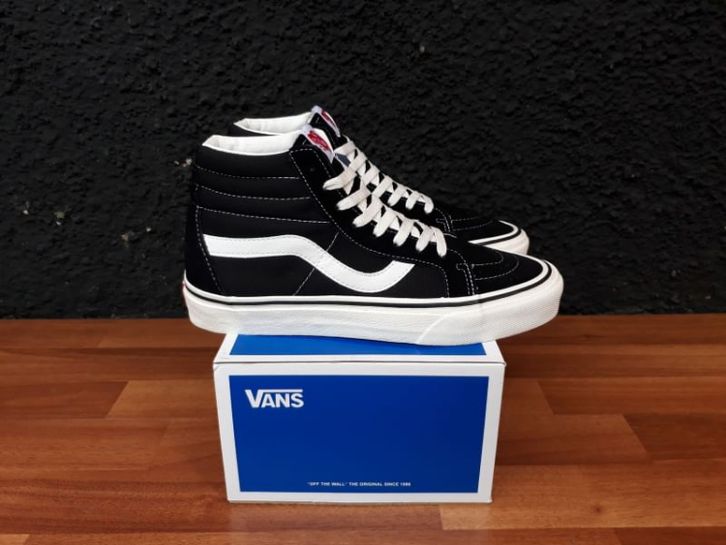 SEPATU PRIA DAN WANITA VANS SK8 HI ANAHEIM FACTORY BLACK WHITE PREMIUM ORI BNIB BONUS KAOS KAKI