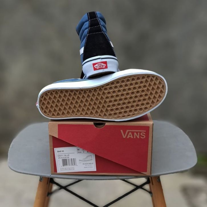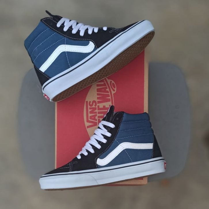 SEPATU PRIA & WANITA VANS SK8 HI NAVY BLUE PREMIUM ORI BNIB BONUS KAOS KAKI