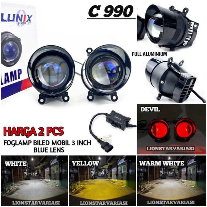 LUNOX C990 - 2 Pcs Foglamp 3 Inch Blue Lens Plus Breket Biled