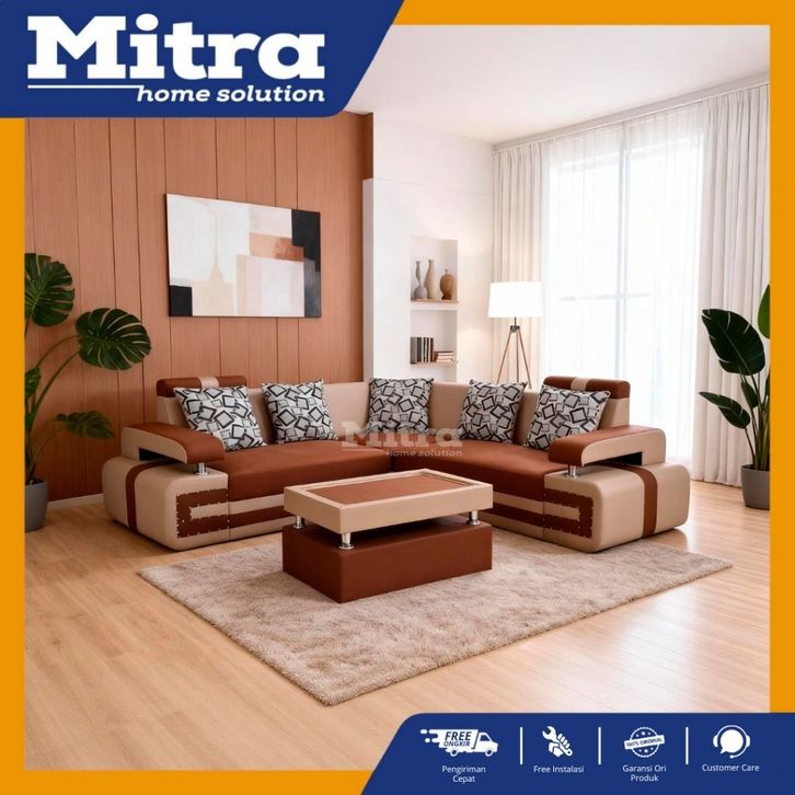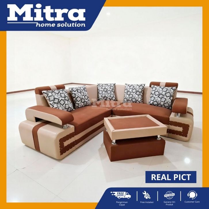 FREE ONGKIR PROMO SOFA L SUDUT MOTIF + MEJA / SOFA L MINIMALIS MURAH BERKUALITAS