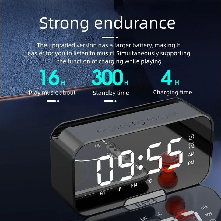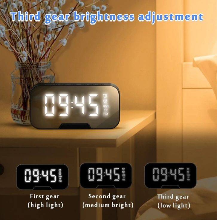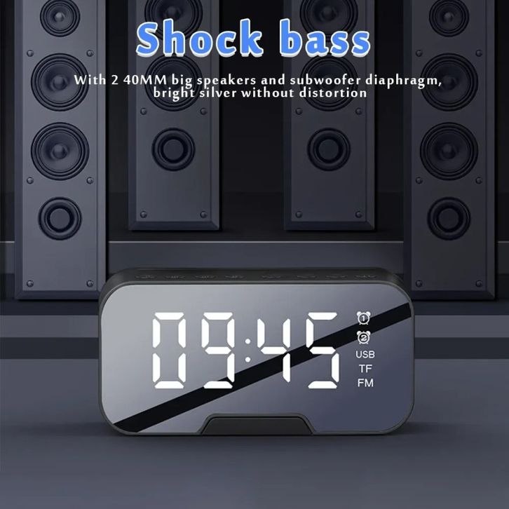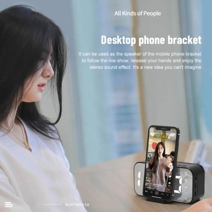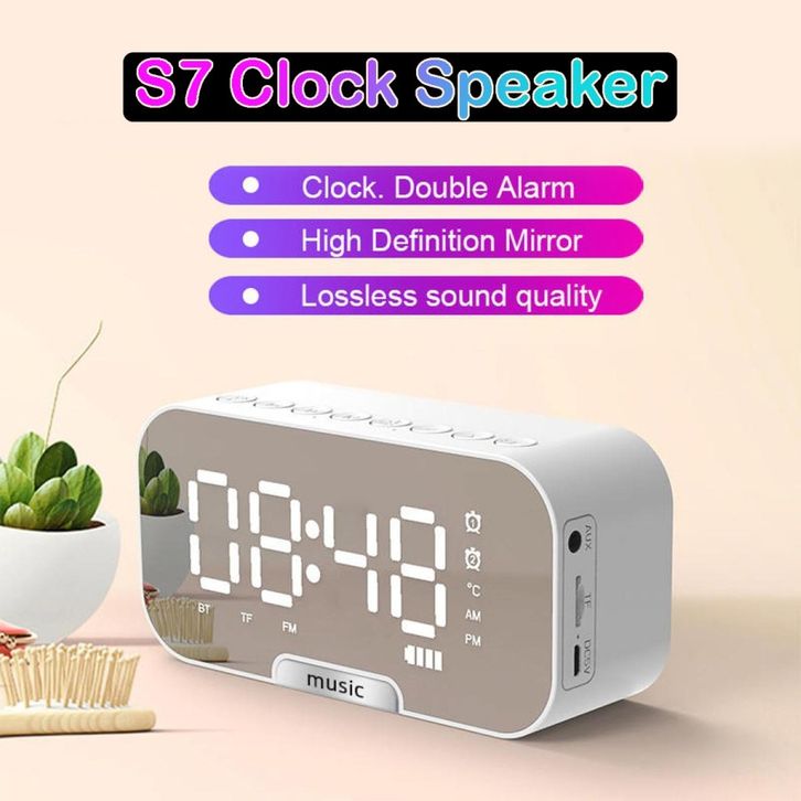 Speaker Bluetooth S7 Clock Alarm Light LED Mirror Desktop Holder Wireless Speaker