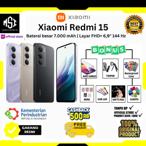 Official Store✔ Xiaomi Redmi 15 (8/128) (8/256) Baterai besar 7000mAh | Ekspansi RAM hingga 16GB Garansi Resmi