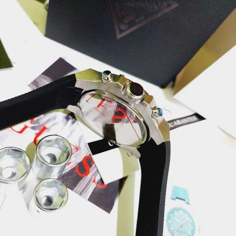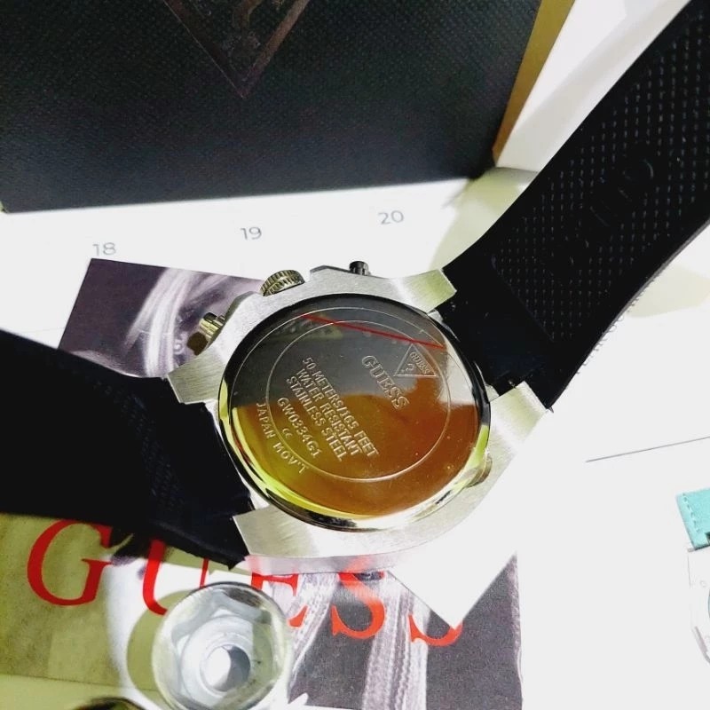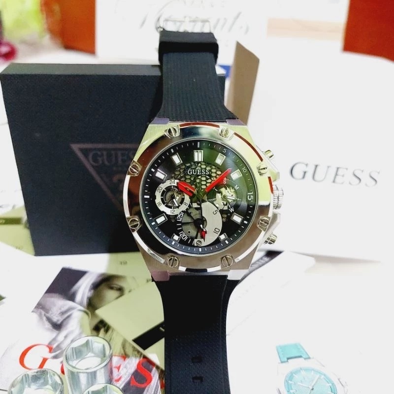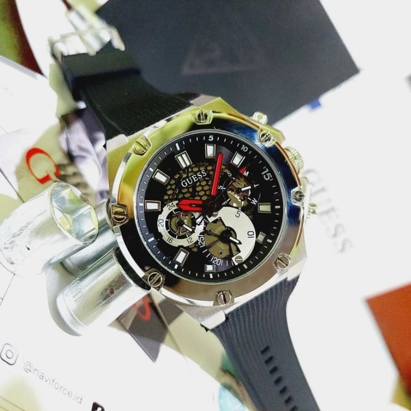 JAM TANGAN PRIA GUESS GW0334G1 SILVER BLACK RUBBER FREE ONGKIR - FREE BOX