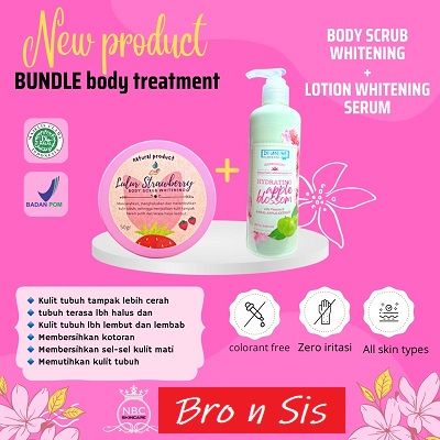 Lotion Whitening, Body Scrub 🍓, PAKET Lotion + Scrub