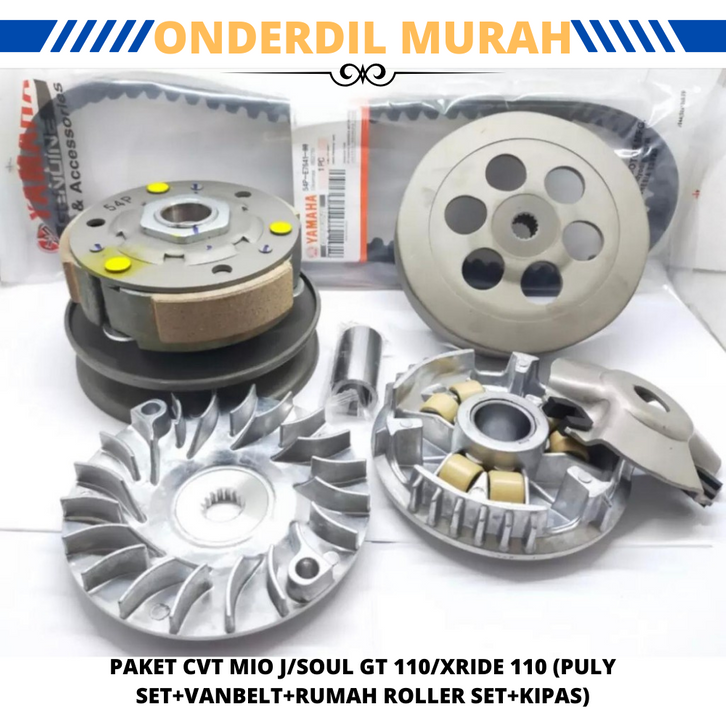 PAKET CVT MIO J/SOUL GT 110/XRIDE 110 (PULY SET+VANBELT+RUMAH ROLLER SET+KIPAS)