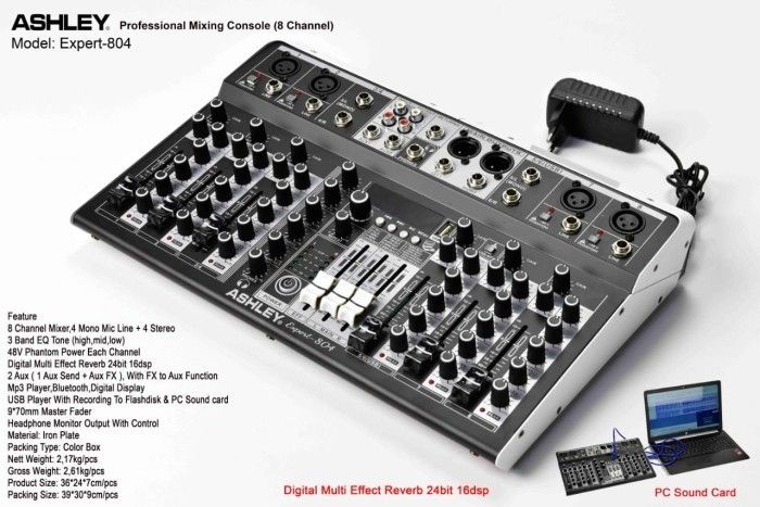 Mixer ASHLEY EXPERT 804 Baru 4 Channel Original Bluetooth PC Soundcard